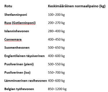 Hevosen paino tulee määrittää mahdollisimman tarkkaan.